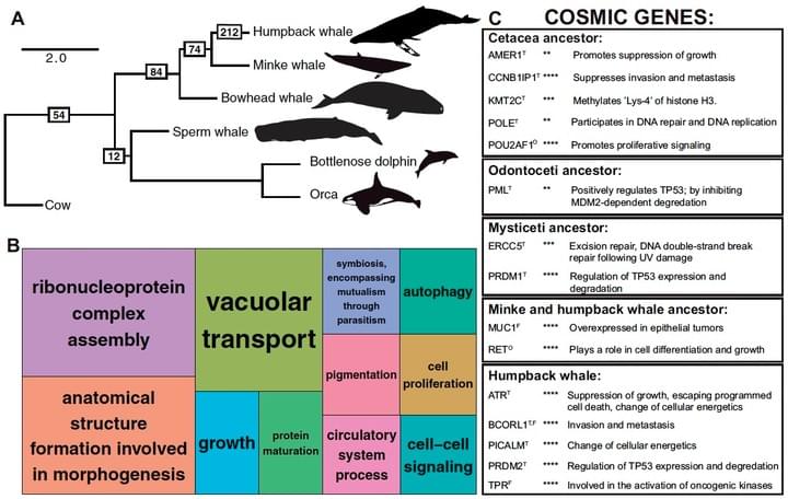 Tollis, M., Robbins, J., Webb, A. E., Kuderna, L. F., Caulin, A. F., Garcia, J. D., ... & Maley, C. C. (2019). Return to the sea, get huge, beat cancer: an analysis of cetacean genomes including an assembly for the humpback whale (Megaptera novaeangliae). Molecular biology and evolution, 36(8), 1746-1763.